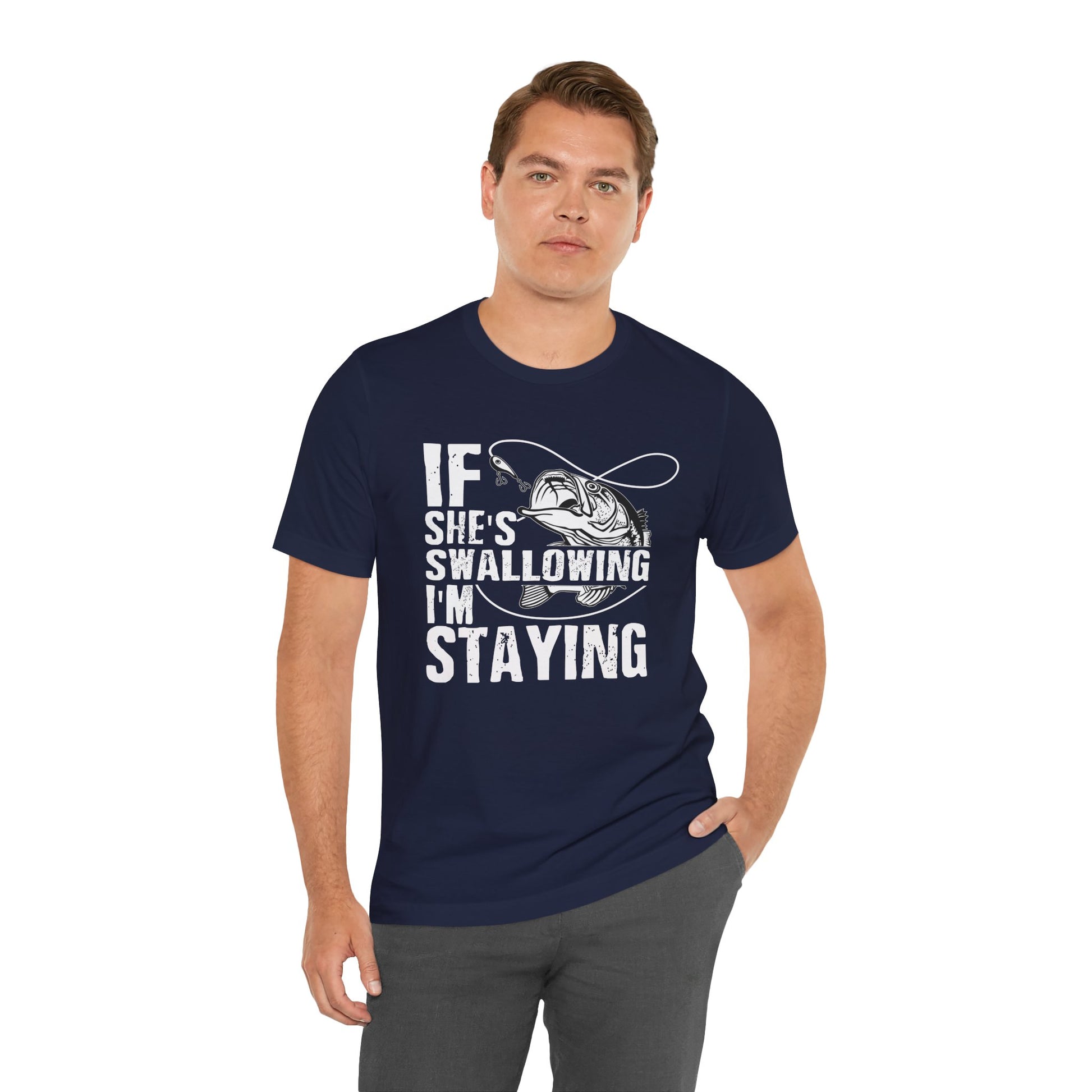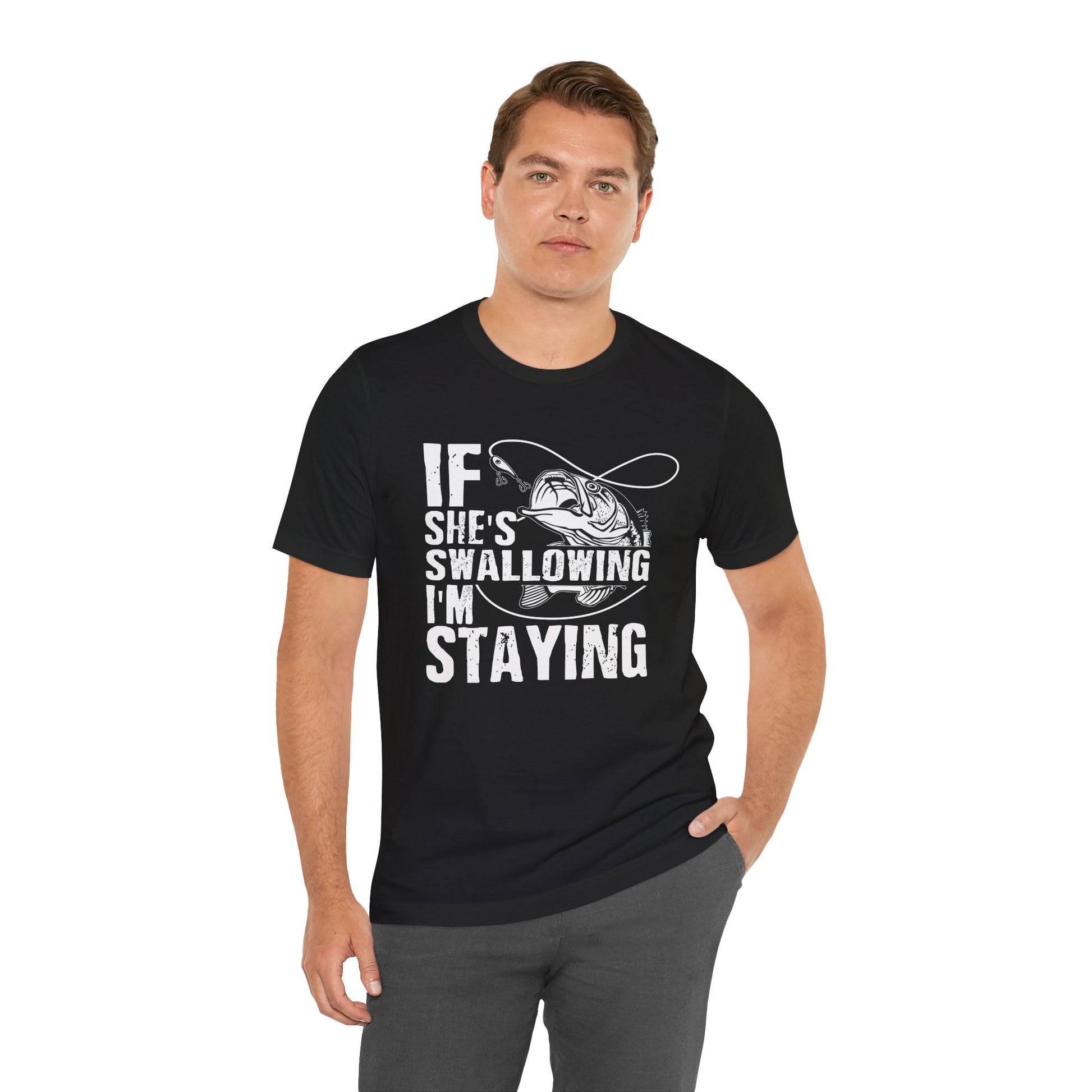 The “If She’s Swallowing, I’m Staying” Tee is all about confident laughs and cheeky vibes. Perfect for parties, bachelor nights, or anyone who enjoys a bold sense of humor, this shirt is a conversation starter wherever you go.